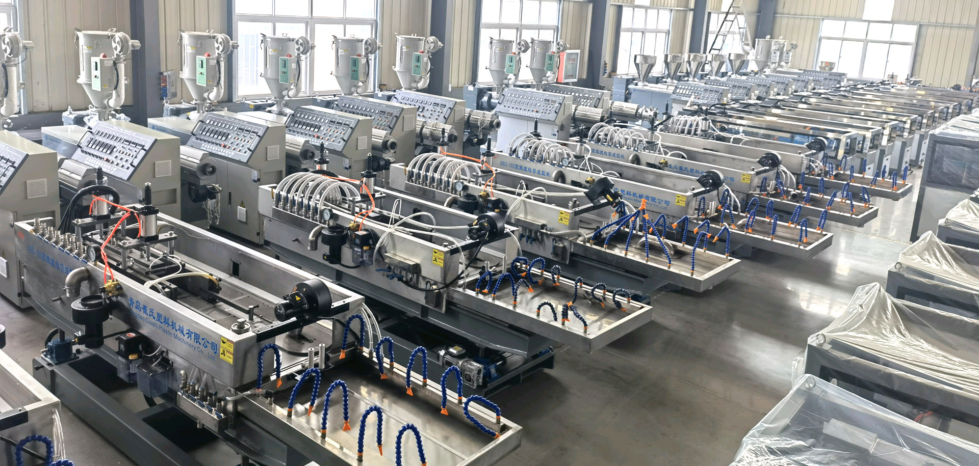 青島崔氏塑料機(jī)械:生產(chǎn)的預(yù)應(yīng)力塑料波紋管設(shè)備、電力管設(shè)備、塑料波紋管設(shè)備、汽車線束波紋管設(shè)備、PPR、PE、PVC、PERT管材設(shè)備及其它各種管材設(shè)備、塑料型材設(shè)備、塑料蜂窩板設(shè)備, 遠(yuǎn)銷:歐州,獨(dú)聯(lián)體,南美洲,中東,東南亞,大洋州,非洲等地的20多個(gè)國(guó)家和地區(qū)。